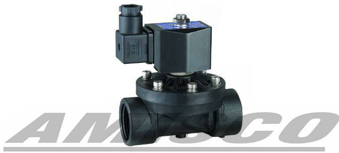 美国AMISCO(阿米斯科)进口原装PVC塑料电磁阀:使用优质工程塑料upvc制成,流体与金属隔绝,防腐蚀;非易碎隔膜,坚实结实,适用于饮用水和各种未经处理的污水,雨水,海水,弱酸,盐碱溶液等介质,特别线圈,防水和防爆,额定电压dc12〜127v或AC36〜380v,其他电压可定制,性能安定,可靠性极高。