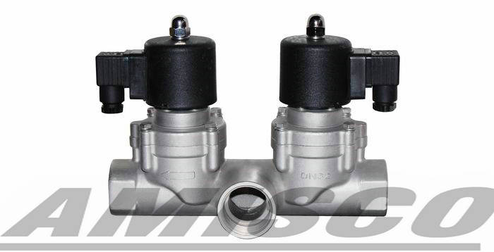 美国阿米斯科AMISCO二位三通电磁阀或三通电磁阀有两个带三个端口的出口孔,当一个孔打开时,另一个孔关闭。